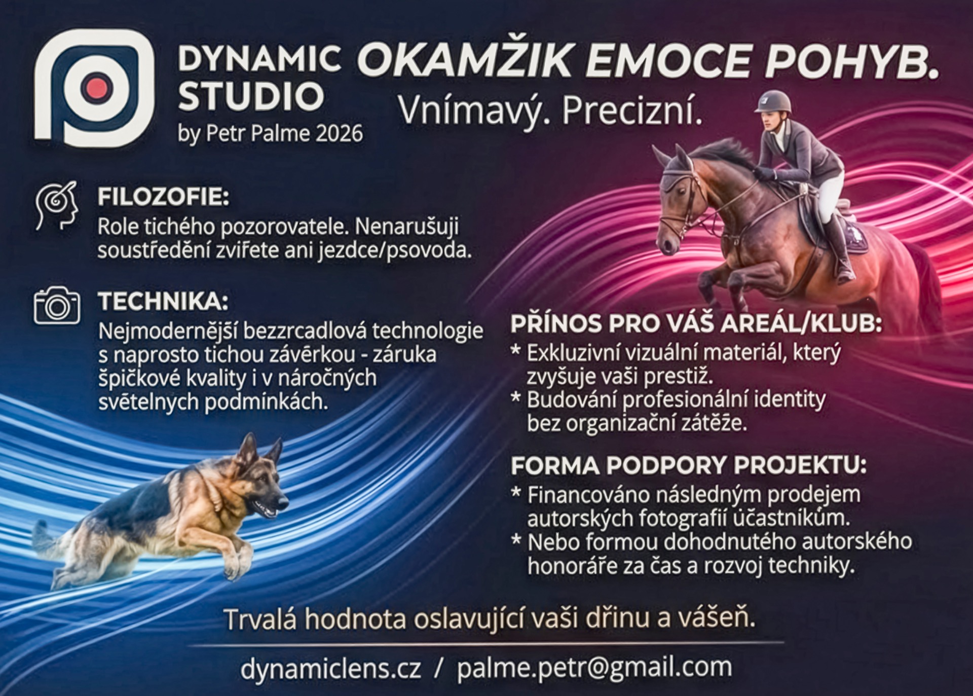 DynamicLens je můj osobní tvůrčí projekt, kde se vášeň pro fotografii potkává s hlubokým respektem ke světu zvířat, sportu a pohybu.